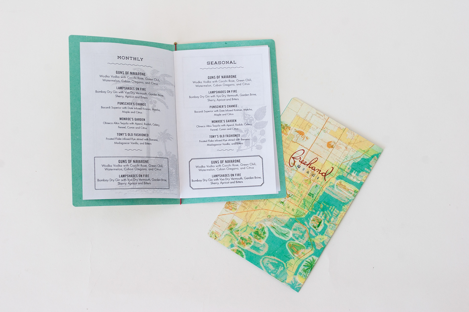 Menu Cover Graphic Design and fabrication for Broken Shaker Miami Beach